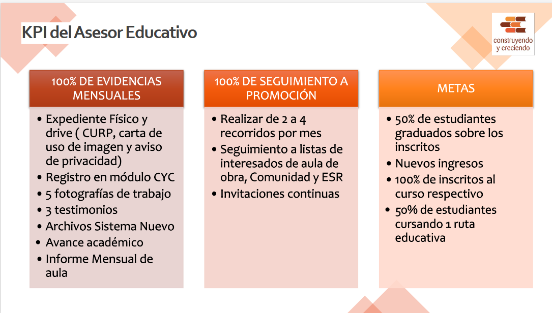 Al finalizar la lectura, contarás con las competencias necesarias para asesorar eficazmente, utilizando las plataformas de la fundación para potenciar la educación y la empleabilidad de cada uno de tus estudiantes.4. KPI del Asesor Educativo
