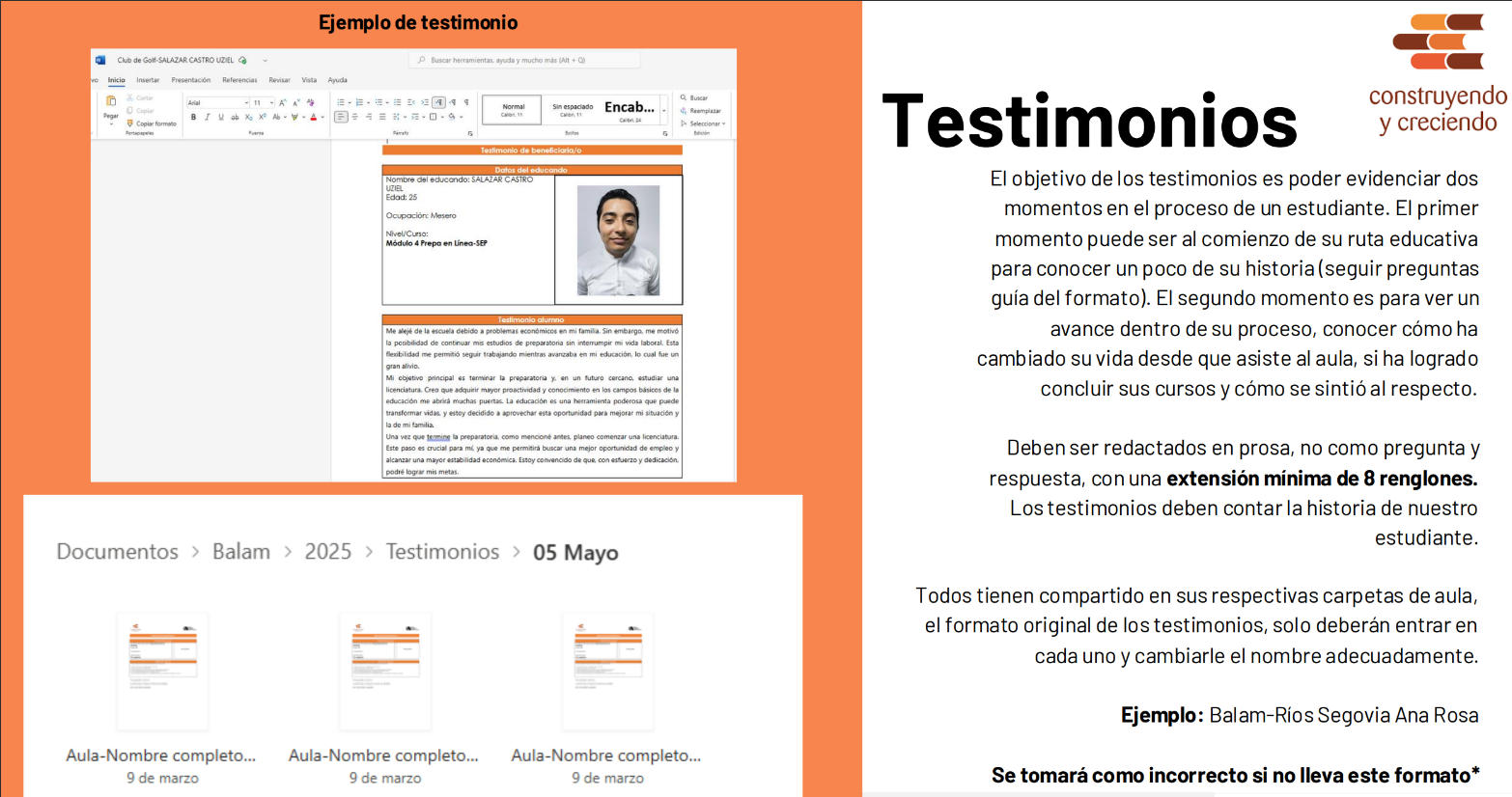 4. Pautas para elaborar los Testimonios