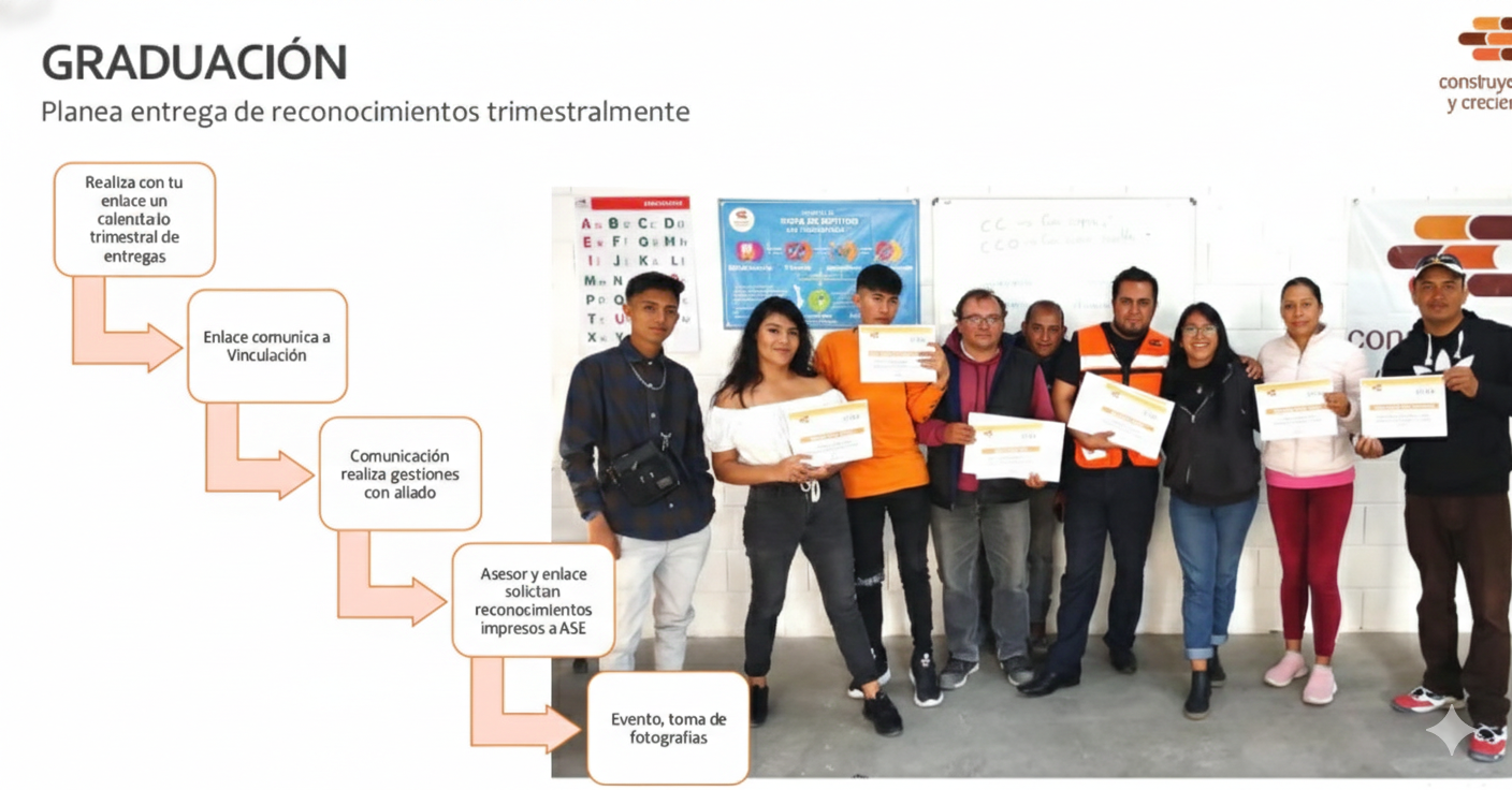 - Graduación: El cierre del ciclo donde celebramos el logro y el impacto real en la vida del beneficiario.